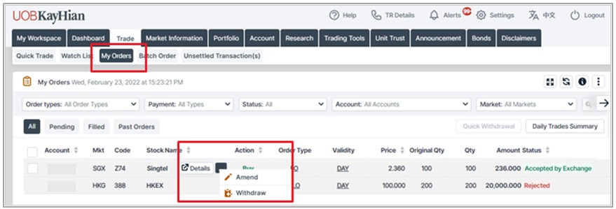 Visit SGX website for more information on trading hours and Trade at Close.