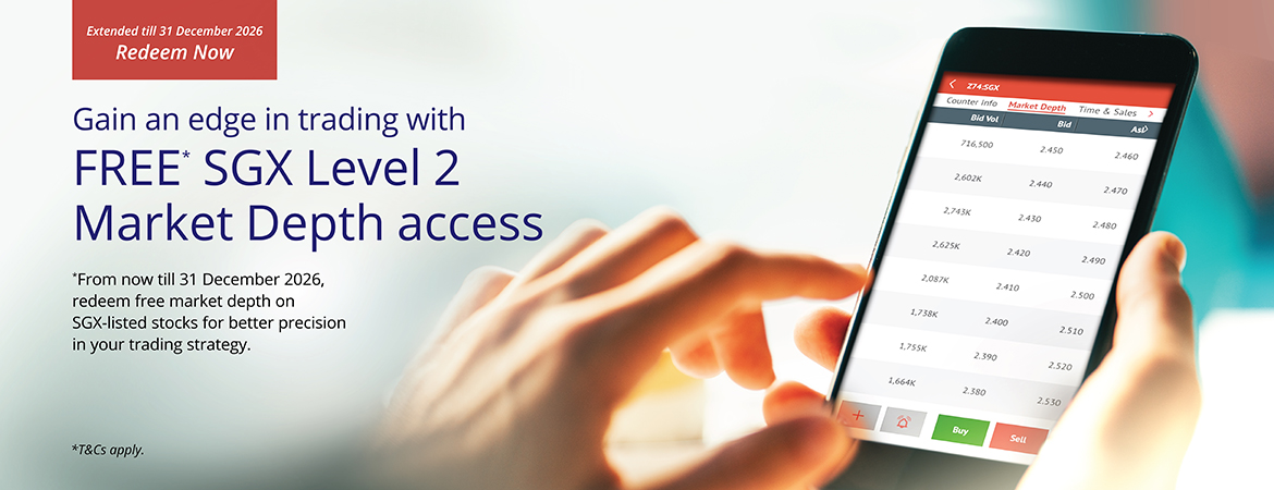 From now till 31 December 2026, enjoy FREE SGX Level 2 Market Depth on SGX-listed stocks of up to 20 levels!